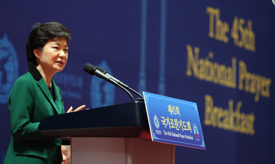 | ▲제45회 국가조찬기도회에서 축사하는 박근혜 대통령 ⓒ청와대 |
