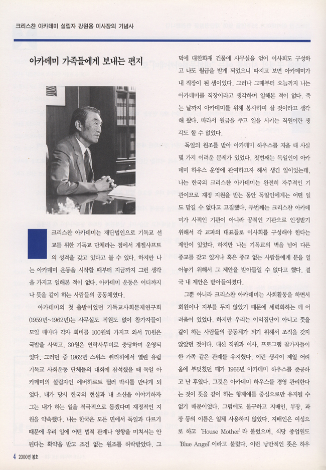 크리스챤아카데미 설립 강원용 이사장 기념사