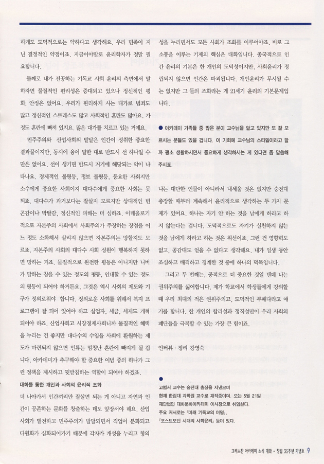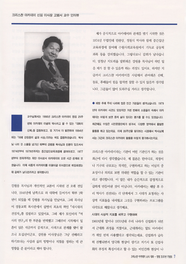크리스챤아카데미 고범서 교수 인터뷰 기사
