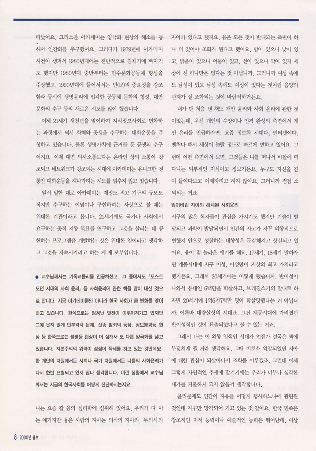 대화 크리스챤아카데미 소식 / 2000년 봄호 통권 제 32호