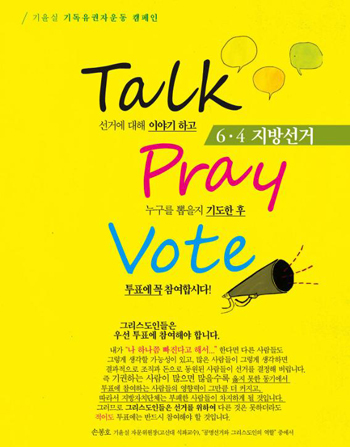 | ▲기독교 시민단체들이 6.4 지방선거를 앞두고 시민들이 투표에 참여할 것을 적극적으로 권유하는 캠페인을 벌이고 있다. |