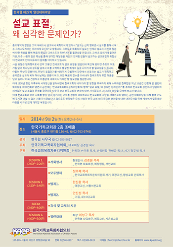 모두발제는 향상교회 은퇴목사인 정주채 목사가 맡았고, 주제발제는 서울서문교회 한진환 목사와 새누리2교회의 안진섭 목사가 맡았다. 행사와 관련한 자세한 내용의 문의는 한목협 사무국(02-586-8617)으로 전화하면 된다.