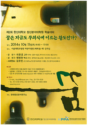 주제는 “꿈은 지금도 무의식에 이르는 왕도인가”이며, 한신대 정신분석대학원 이준호 교수가 학술대회 주제와 동명의 주제로 강연을 하고, 맹정현 정신분석학 박사가 “꿈 작업의 알고리즘—정신증과 히스테리 사이”를 강연한다. 그 뒤에 한신대 정신분석대학원 1기 졸업생 김유진 정신분석심리치료사의 사례발표가 이어진다.