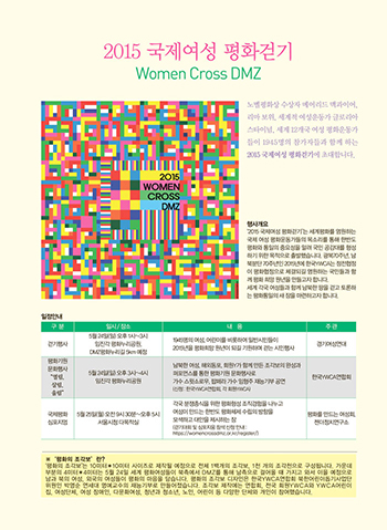 한편, 경기여성연대는 이날 오후 1시부터 임진각평화누리공원에서 1945명의 일반시민들과 함께 걷기행사를 실시하며 2015년을 평화희망의 원년이 되기를 기원한다. 한국YWCA는 오후 3시부터 같은 장소에서 남북한 여성과 해외동포가 함께 만든 ‘평화의 조각보’를 완성하는 행사를 갖고 가수 스윗소로우, 팝페라 가수 임형주의 공연을 주관한다.
