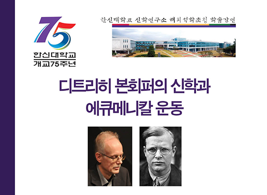 “디트리히 본회퍼의 믿음의 유산을 헤아리고 한국 교회와 신학의 방향을 모색하기 위해 해외석학 초청 학술강연을 준비했다”고 취지를 밝혔다.
