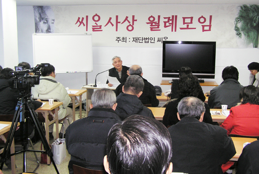 11일 올해 첫 씨알사상월례모임에 다석학회 회장 정양모 신부가 강사로 나서 다석의 그리스도론을 강의했다. 이날 모임은 서울 시청역 부근 대양빌딩의 한 강의실에서 열렸으며 많은 사람들이 관심을 갖고, 참여했다.