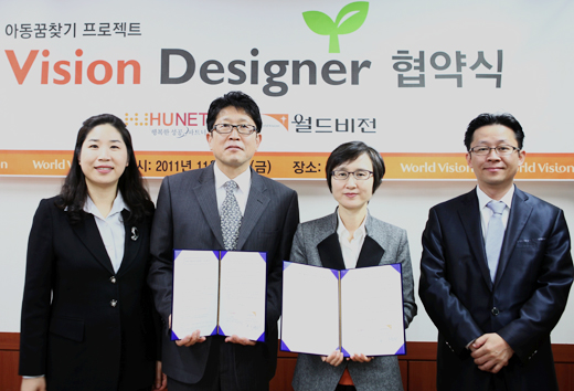 ‘비전디자이너’ 사업은 월드비전과 ㈜휴넷이 함께 국내 저소득 계층 아이들의 꿈을 발견하고 이루기 위해 지속적으로 다양한 온오프 교육프로그램을 제공하는 프로젝트다. 앞으로 2012년 1월부터 시작되는 ‘비전디자이너’ 프로젝트 대상자로 선정된 아이들은 ‘자아탐색 프로그램’과 더불어 ‘공부의 신 교육’ 강의를 받는다. 또 마이스터고 방문, 대학탐방, 궁금한 분야 직업탐방 등을 통해 지속적으로 자신의 꿈을 탐색하게 된다.