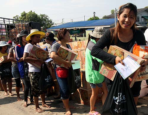 ▲태국 수재민들이 굿피플 긴급구호물자를 받아가고 있다.