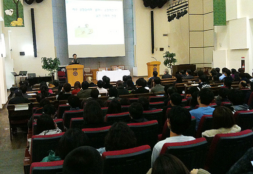 | ▲18일 오후 연세대 신학관 예배실에서 열린 제51회 연세신학 공개강좌에서 권수영 박사(연세대 연합신학대학원, 목회신학)가 강연하고 있다. ⓒ베리타스 |