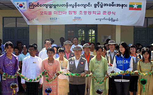 지난 2008년 태풍 나르기스의 수해지역 미얀마 짜웃단구의 마을에 초중등학교와 보건소를 재건한 국제개발 NGO 굿피플(회장 김창명)이 지난 15일 준공식을 가졌다. 굿피풀은 외찌, 삘레카, 짬삥 등 3개 마을에 각각 보건소와 초중등학교를 재건했다.(사진제공=굿피플)
