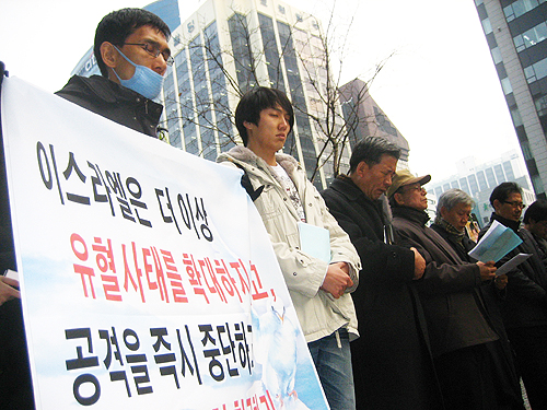 이 단체들은 공동성명을 통해 “전쟁을 수단으로 국가생존을 모색하는 이스라엘의 팔레스타인 공격을 반대한다”며 “이번 침공은 이스라엘 집권당이 정치적 수세를 벗어나기 위한 정치적 이유도 있음에 경악한다”고 규탄했다.