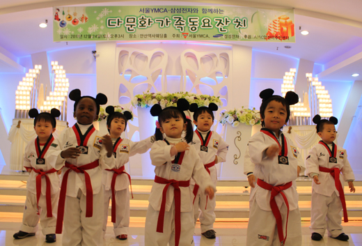 서울 YMCA와 삼성전자가 공동 주최한 ‘다문화가족동요잔치’가 24일 오후 3시 안산 역사 웨딩홀에서 열렸다. 이날 행사에는 다문화 가족 250여명이 참석했으며 미취학·취학 다문화 아동공연, 세계 속의 다양한 동요배우기, 콩고·필리핀 가족팀, 다문화 어린이 핸드벨 공연 등이 진행됐다.