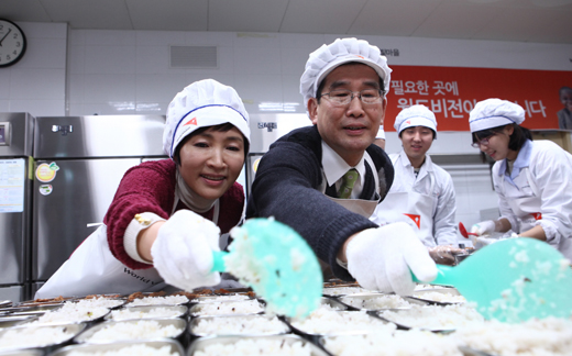 | ▲월드비전 양호승 회장과 정애리 친선대사가 18일 월드비전 서울 북지부 꿈빛마을 사랑의 도시락집에서 봉사활동을 하고 있다. ⓒ월드비전 제공 |