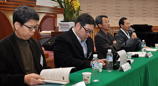 | ▲한국기독교장로회는 2일 오후 대전 한성교회에서 2012년 총회 사회선교 정책협의회를 개최했다. 이날 협의회의 주요 프로그램인 <토크콘서트>에는 (왼쪽부터)이일영 교수(한신대 중국지역학과), 시사평론가 나꼼수 김용민씨, 정태인 원장(새로운사회를여는연구원), 김경호 목사(들꽃향린교회) 등이 토론자로 참여했다. ⓒ기장 제공 |