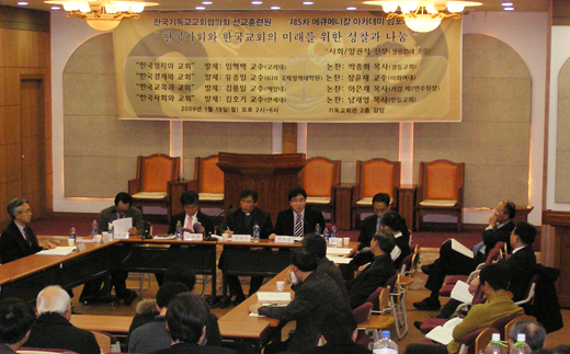 이날 심포지엄에는 임혁백 교수(고려대), 유종일 교수(KDI 국제정책대학원), 김용일 교수(해양대), 김호기 교수(연세대) 등이 각각 ▲ 한국정치와 교회 ▲ 한국경제와 교회 ▲ 한국교육과 교회 ▲ 한국사회와 교회 등을 주제로 발제했으며 박종화 목사(경동교회), 장윤재 교수(이화여대), 이은재 목사(기감 제2연수원장), 남재영 목사(빈들교회) 등이 각 주제별 논찬자로 나섰다.