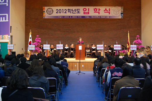 | ▲29일 한신대 오산캠퍼스 한울관에서 2012년도 입학식이 열렸다. |