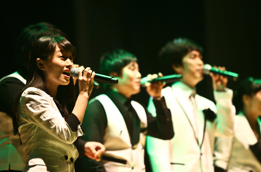 | ▲건국대서 열린 스톱행거 콘서트에서 아카펠라그룹 다이아가 공연을 진행하고 있다. |