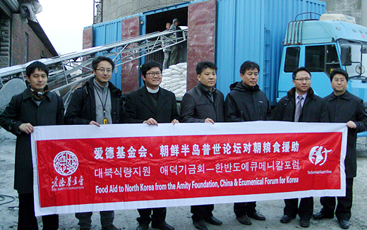 한국기독교교회협의회(이하 NCCK, 총무 김영주)가 굶주린 북한 동포들을 위한 3차 대북 지원을 무사히 마쳤다고 20일 밝혔다. 이번에 ‘한반도 에큐메니칼 포럼’이 북한에 지원하는 밀가루 153톤은 조선그리스도교연맹을 통해 북한 내 탁아소와 유치원 등에 분배될 예정이며 분배 과정에서의 투명성 확보를 위해 중국 애덕기금회는 밀가루가 어느 지역에 어떻게 분배되었는지를 조그련에 요청할 계획이다.(사진제공=NCCK)