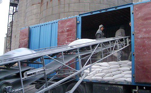 | ▲중국애덕기금회의 화물차에 실리고 있는 식량들. |