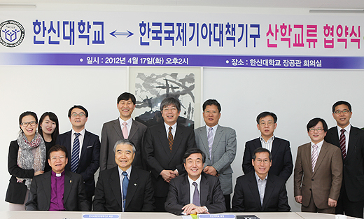 한신대는 사회복지법인 한국국제기아대책기구(회장 정정섭)와 사회봉사활동 협력∙상호 지원에 관한 산학교류 협약을 체결했다. 17일 한신대 장공관 회의실에서 열린 협약식에는 채수일 한신대 총장과 박경철 한신대 학생처장을 비롯해 한국국제기아대책기구 정정섭 회장, 전응림 서울동부지역본부장, 최호순 수원지역회장 등이 참석했다.