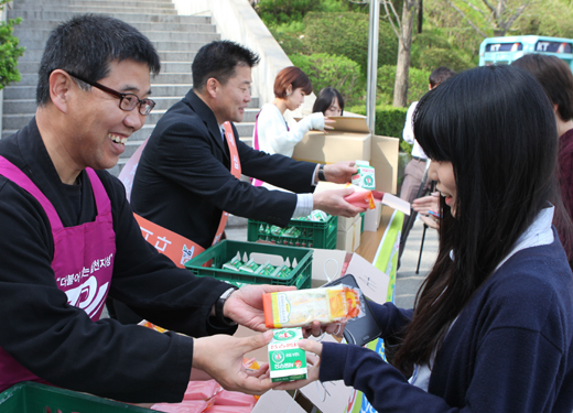 24일에는 채수일 총장과 박경철 학생처장을 비롯해 보직 교수 등 10여 명이 참여한 가운데 총 1900여 명의 학생들에게 샌드위치와 음료가 제공됐다. 학생 식당을 운영하는 JSG((주)제이에스지)가 간식을 일부 후원, 사랑나눔 행사에 힘을 보탰다.