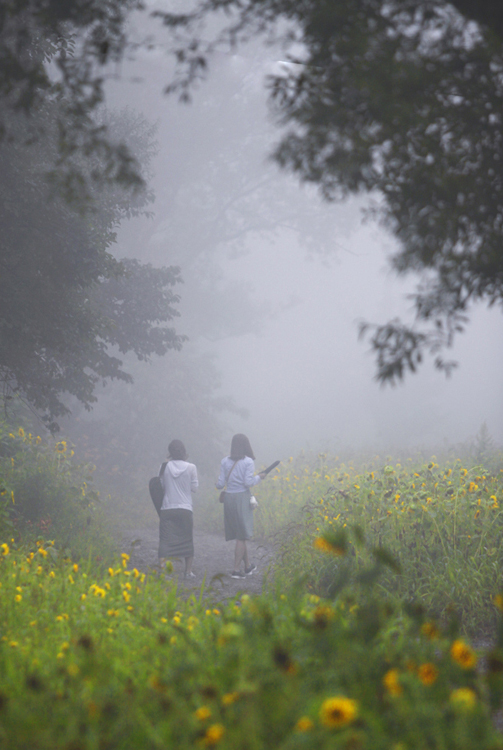 짙은 안개 숲을 향해 걸어가는 두 젊은이의 뒷모습이 아리기만 하다.