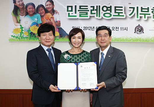 월드비전 여의도본부에서 열린 협약식에는 월드비전 양호승 회장과 민들레영토 지승룡 대표 그리고 지 대표의 아내이자 월드비전 친선대사로 활동하고 있는 배우 정애리 씨가 나란히 참석한 가운데 진행됐다.