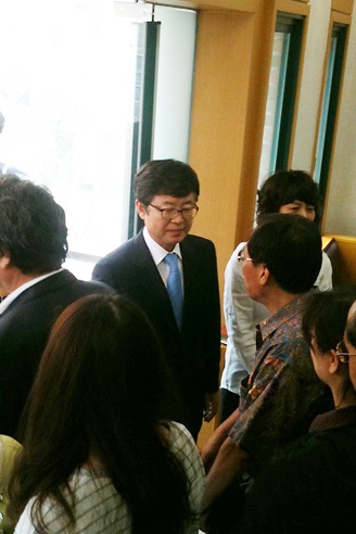 예배를 마치고는 김광열 목사의 축도 후 신속히 예배당 출입구로 이동한 송 목사는 예배당 문을 나서는 교인들과 작별 인사를 하는 시간을 가졌다. 송 목사 앞에 선 교인들은 두손으로 송 목사의 손을 꼭 잡으며 악수를 하거나 손수건으로 눈물을 훔치며 송 목사 내외와 포옹을 하기도 했다.