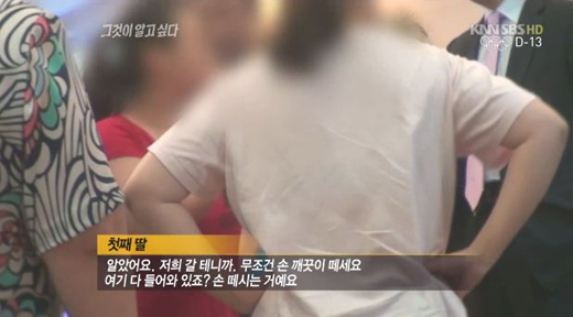 | ▲세 딸들이 예배를 갖고 있던 대전생명샘교회 모 목사를 불시에 찾아와 자신들의 (잘못된)믿음 행위에 방해말라며 항의를 하고 있다. ⓒSBS 영상 캡쳐. |