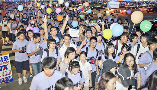 | ▲서울광장에서부터 밤길걷기를 시작하는 참가자들(2011년 대회사진) |