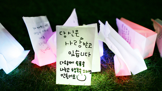 | ▲시청 앞 서울광장에 참가자들이 전시한 라이프 메시지(2011년 대회사진) |
