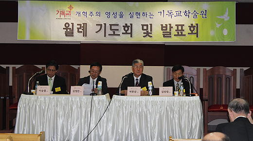 | ▲지난 7일 서울 반도중앙교회에서 ‘한국교회와 사회복지 과제’를 주제로 제23회 월례기도회 및 발표회가 열렸다. ⓒ기독학술원 제공 |
