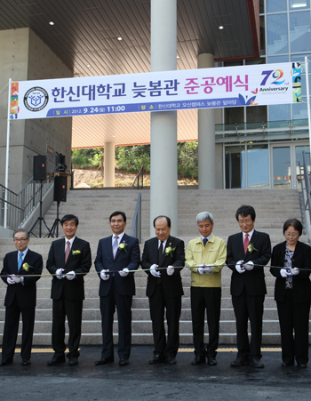 한신대(총장 채수일)가 강의동 건물인 늦봄관을 준공함에 따라 재학생의 편익 향상 및 교육환경개선에 기여할 것으로 기대된다. 한신대는 지난 24일 오전 오산캠퍼스 늦봄관 앞마당에서 준공예식을 가졌다고 밝혔다.
