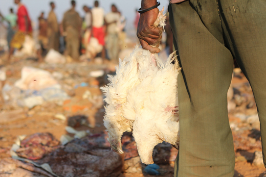 | ▲쓰레기장에서 폐사한 닭을 집어 든 주민 |