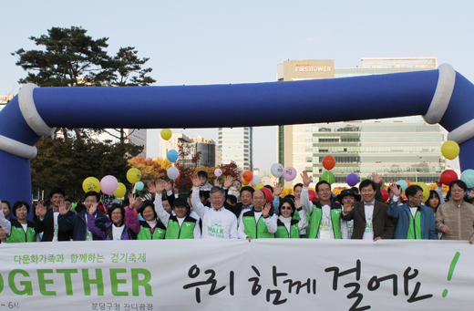 6000명이 함께 손을 잡고 걸었다. 국제구호개발 NGO 월드휴먼브리지(대표 김병삼)가 28일 오후 2시부터 6시까지 분당구청 잔디광장, 중앙공원, 탄천 일대에서 외국인과 내국인 6,000여명이 참여하는 ‘2012 다문화 가족과 함께하는 월드휴먼브리지 걷기축제, 워크 투게더’를 개최했다.