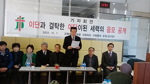 소위 신천지 개입설에 의해 명예가 훼손당한 강북제일교회를 사랑하는 사람들의 모임(이하 강사모)이 1일 오전 강북제일교회에서 기자회견을 열고, 이번 사건에 연루된 일부 이단연구가들을 향해 "이단조작범"이라고 규정, 이들에 대해 전면전을 펼 것임을 알렸다.