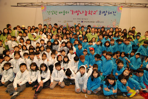 이 행사에는 서울염강초등학교 등 2백여명의 아동들과 자원봉사자, 한미은행노동조합원과 시티은행 직원, 홍보대사 김혜수씨가 참가했다.