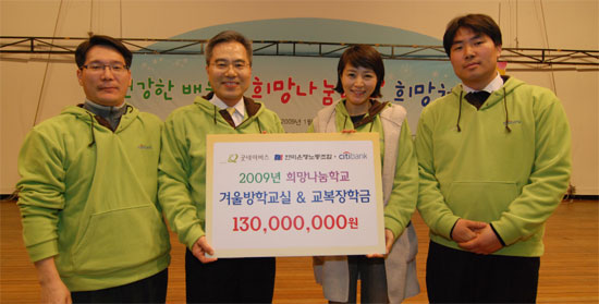 한미은행노동조합과 시티은행은 방학교실지원금 8천만원과 교복장학금 5천만원을 기탁했다.