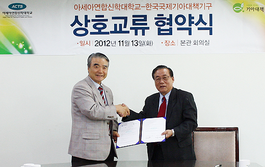 국제구호단체 기아대책(회장 정정섭)이 아세아연합신학대학교(총장 김영욱, 이하 ACTS)와 13일 ACTS 본교에서 교육, 연구 및 학술, 사회봉사활동 협력에 관한 협약식을 가졌다.