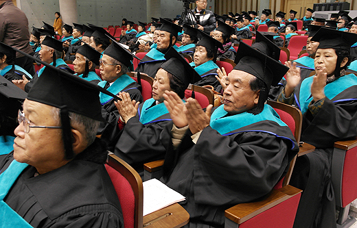 평균 연령 73세 노인 300여 명이 한신대 평생교육원이 운영하는 원로대학에서 생애 첫 학사모를 썼다.