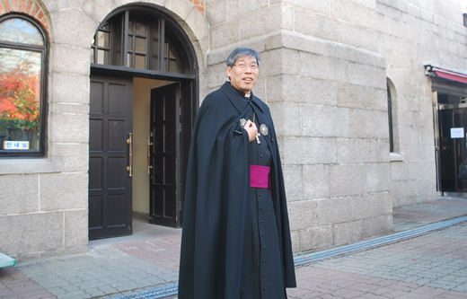 | ▲성공회 서울 대성당 앞에 선 김근상 NCCK 신임회장. ⓒ베리타스 |