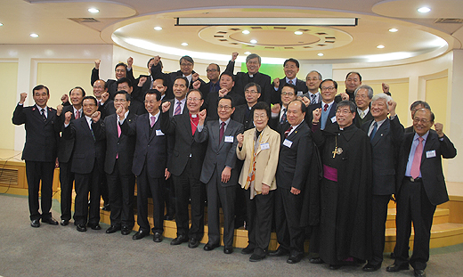 | ▲WCC 한국측 준비위 실행위원들이 20일 서울 정동 성공회 서울 대성당 회의실에서 제3차 실행위원회를 마치고, 기념 촬영에 임하고 있다. ⓒ베리타스 |
