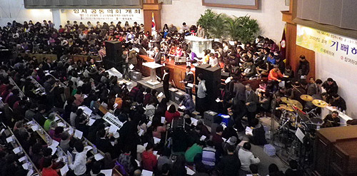 | ▲지난 25일 광성교회 본당에서 교단 탈퇴 건을 둘러싼 임시공동의회가 열렸다. ⓒ로앤처치 제공 |