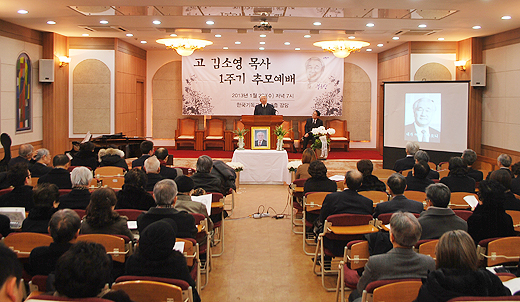 고 은곡 김소영 목사 1주기 추모예배가 2일 오후 5시 한국기독교회관 2층 조에홀에서 열렸다. 권영삼 목사(수원영은교회)의 사회로 진행된 이날 추모예배에서 박상증 목사(전 아름다운재단 이사장)가 설교를, 김영주 목사(한국기독교교회협의회 총무), 손승원 목사(모스크바 장신대 총장)가 추모사를 전했다.