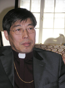 | ▲ 김근상 주교는 얼마 전 복음교단 총회에 인사차 참석해 복음교단에 통합을 제의하는 깜짝 발표를 하기도 했다 ⓒ김진한 기자 |