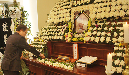 | ▲한 조문객이 고 오재식 박사(전 월드비전 회장) 영전에 헌화하고 있다. ⓒ베리타스 |