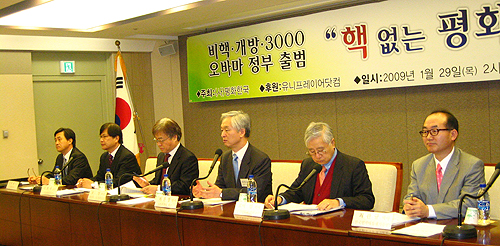 주제발표자로 나선 조민 박사는 “미국 오바마 신정부의 핵폐기 정책을 설명하면서 “한국도 오바마의 미국과 함께 핵무기 없는 세계의 비전 속에서 핵무기 없는 한반도를 적극 추구해야 한다”고 강조했다.