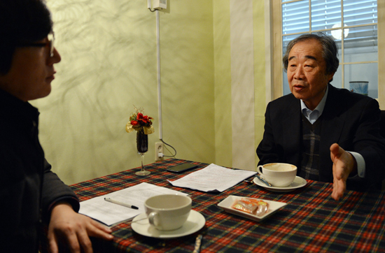 | ▲대담에 참여하고 있는 김경재 한신대 명예교수(오른쪽)와 김진한 편집국장(왼쪽). |