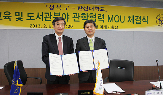 양 기관은 지난 6일 오후 4시 성북구청 구청장실에서 ‘교육·도서관분야 관학 협력 협정(MOU)’을 체결하고 ▲성북구 방과후 프로그램 운영 및 지원 ▲성북구 다문화도서관 프로그램 운영 및 지원 ▲교육 발전을 위한 인프라 구축 및 정보 공유 ▲기타 양 기관의 발전과 우호 증진을 위한 협력사업에서 협력하기로 했다.
