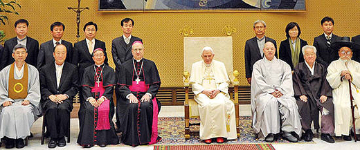 | ▲지난 2010년 한국종교지도자협의회 6대 종교 지도자들이 로마 바티칸 교황청을 방문, 교황 베네딕토 16세(가운데)를 만나 기념 촬영을 하는 모습. ⓒ교황청 |